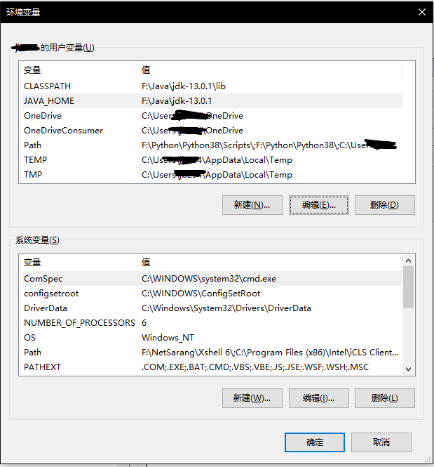 JAVA_HOME:F:/Java/jdk-13.0.1 (安裝目錄)