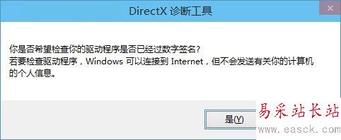 二、接下來會彈出一個Directx診斷工具提示框,我們直接點擊【是】,如下圖所示。