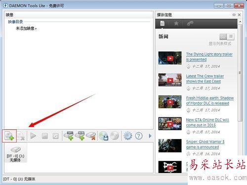 2、打開daemon tools lite,點擊左下角的添加命令。
