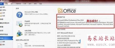 8、最后一步,點擊Activate office 2010 VL,即可成功激活。