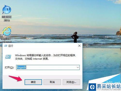 2、在打開后面鍵入命令:Regedit,然后點確定,如下圖所示。