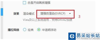 2、在畫面里設置渲染模式為增強自渲染(EVRCP)