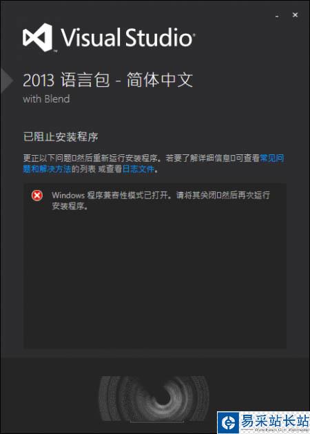 不少程序員發(fā)現(xiàn)在Win10下重新安裝VS2013后無法安裝VS2013中文語言包,提示W(wǎng)indows程序兼容模式已打開。