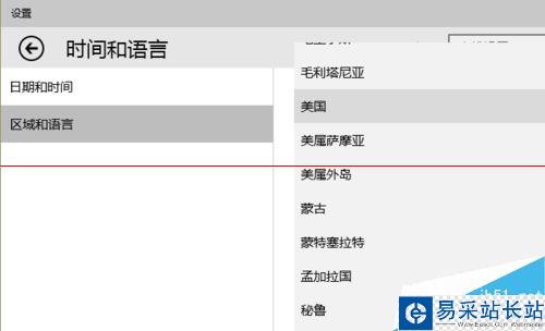 為了讓小娜開工,我們點擊開始-->設置-->時間和語言-->區域和語言,把國家和地區改成“美國”。唉,為了嘗鮮試新,容易嗎。