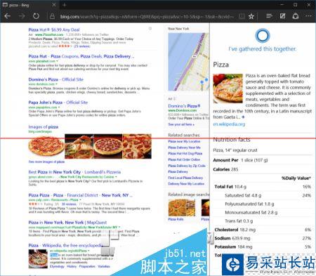 和其他瀏覽器比起來,Edge瀏覽器的搜索框提供了更多的功能,比如鍵入天氣,不用點擊搜索引擎就能看到回答。Cortana集成功能在不打擾用戶瀏覽的情況下推送搜索答案。
