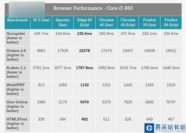 這次測(cè)試由AnandTech評(píng)定,使用其跑分基準(zhǔn)測(cè)試工具,比如SunSpider、Octane 2.0和HTMLTest,測(cè)試設(shè)備是一臺(tái)搭載英特爾Core i7-860處理器電腦。
