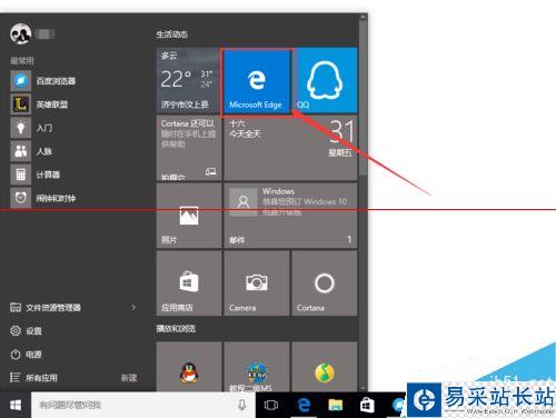 1、首先,我們點擊進入屏幕左下角的“win開始”按鈕,點擊打開“Microsoft Edge”