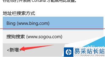 3、找到“地址欄搜索方式”項(xiàng)目,點(diǎn)擊它并選擇“新增”;