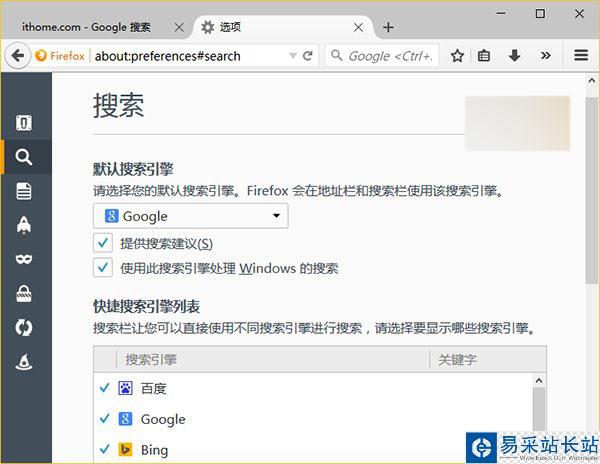 然而并不是每個人都習慣使用必應,近日,Mozilla發布了Firefox 40瀏覽器,新版除在界面上更好地適配Windows10外,還包含另一項針對Win10進行優化的功能。在Win10中,當用戶將火狐(版本大于40)設置為默認瀏覽器后,用戶在任務欄中調用火狐搜索時,Firefox會自動轉換為使用用戶設置的默認搜索引擎進行搜索,而不再是系統默認的必應搜索引擎。