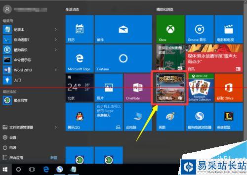 1、點擊Win10正式版桌面左下角的“Windows”按鈕,打開的擴展菜單中找到“播放和瀏覽”欄目中的”應(yīng)用商店“進入。