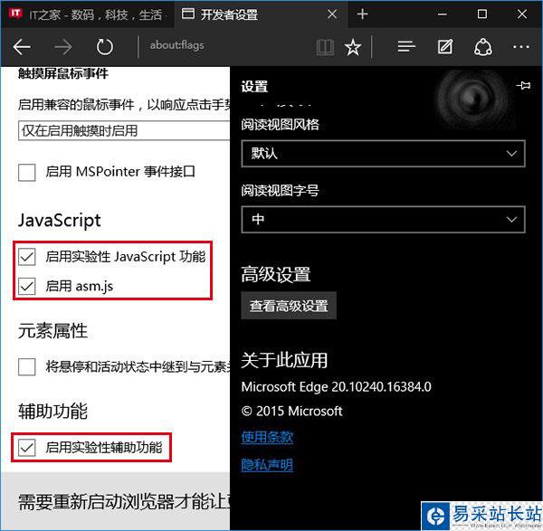 根據微軟官方介紹,勾選這三個項目后,Edge瀏覽器的流暢度會明顯提升。需要注意的是,以上三個選項適用于Win10正式版10240的Edge瀏覽器,在最新的Win10預覽版10532中,沒有“啟用asm.js”項,因此相關用戶勾選其他兩項即可,下圖示