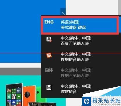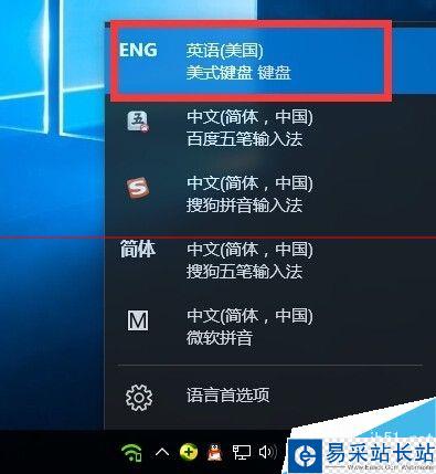 2、為了確保可以正常查看“微軟藏彩蛋”8位游戲界面,我們需要將“系統(tǒng)輸入法”設(shè)置為“英文”狀態(tài):點(diǎn)擊任務(wù)欄右下角的“輸入法”圖標(biāo),從其擴(kuò)展菜單中選擇“英語(美國)”項(xiàng)。