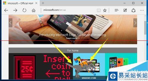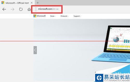 1、首先,打開Win10Edge瀏覽器,在地址欄輸入“微軟官方網(wǎng)站”(英文版:microsoft.com/en-us),如圖所示: