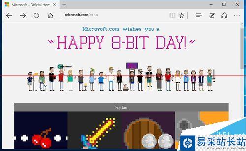 怎么利用Win10Edge瀏覽器玩微軟官網(wǎng)藏彩蛋8位游戲呢?在9月14日為了記住“8位節(jié)”,微軟在其英文官網(wǎng)埋藏了彩蛋,用于慶祝這具有劃時(shí)代意義的“8位節(jié)”,開啟“彩蛋”游戲后,整個(gè)屏幕將被“8位”刷屏,同理還可以看到可愛又熟悉的“8位微軟忍者貓”,整個(gè)界面特別有看點(diǎn)。下面小編就與大家一起來開啟“微軟官網(wǎng)藏彩蛋”之秘吧。