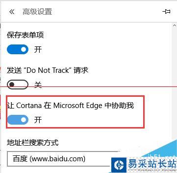 3、開啟讓小娜在瀏覽器中協助我功能: