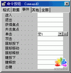 這是剛建的按鈕的屬性窗口,可以看到,單擊事件已經(jīng)指向的宏1。