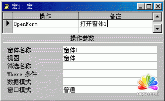 在操作列選擇“OpenForm”,下面參數(shù)中的“窗體名稱”選擇“窗體1”(當(dāng)然,在這之前你需要有一個叫做窗體1的窗體)。