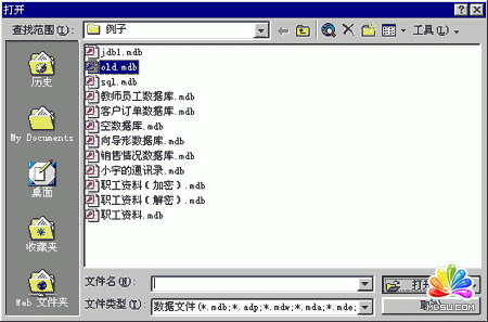 首先我們講講將舊版本的數據庫轉換到“Access2000”所能接收的數據庫版本。單擊工具欄上的“打開”按鈕,選擇舊的“數據庫”文件,