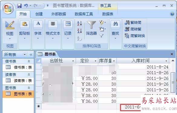 4、打開表的數據表視圖后,會見到在新記錄行的“入庫時間”上默認填上了當前的系統時間。