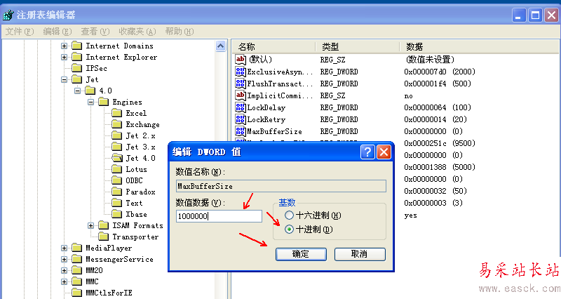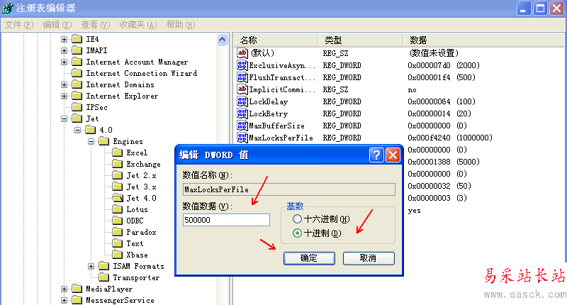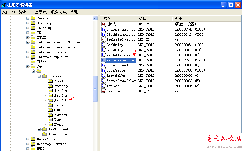3、依次找到注冊表[HKEY_LOCAL_MACHINE/SOFTWARE/Microsoft/Jet/4.0/Engines/Jet 4.0],雙擊MaxLocksPerFile