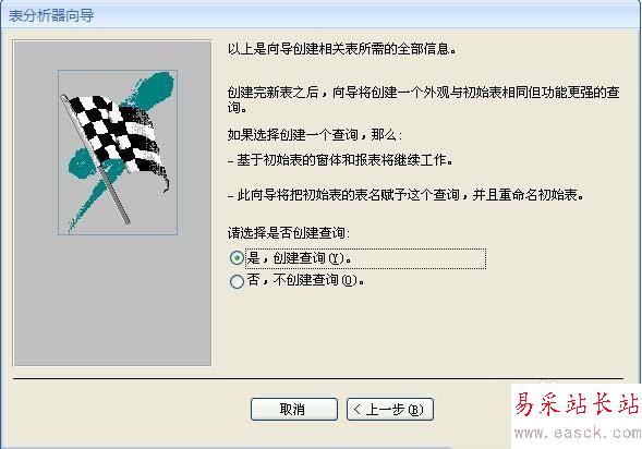 8、在打開的“表分析”完成界面中,保持系統默認,單擊“完成”按鈕,完成對表的拆分。