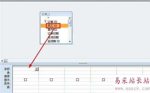 3、在點擊員工字段,然后拖拽到下面的設計表格