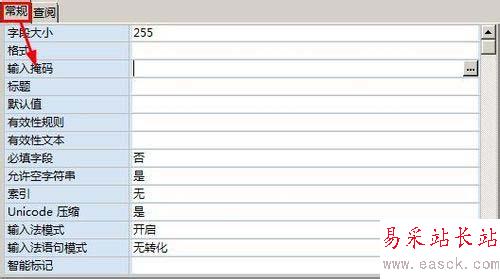 4、在下面的常規選項下,我們找到輸入掩碼的選項,將光標移動到該欄