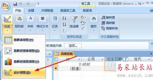 2、在視圖選項的下拉菜單中,選擇設計視圖。