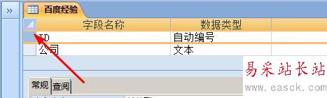 3、來(lái)到了設(shè)計(jì)視圖面板,我們?cè)谝O(shè)立主鍵的字段的右邊,也就是紅色箭頭的位置右鍵單擊