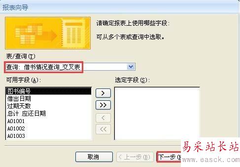 7、此外,還可以利用“報(bào)表向?qū)?rdquo;創(chuàng)建交叉報(bào)表。只要在“報(bào)表向?qū)?rdquo;對(duì)話框中選擇數(shù)據(jù)源“交叉表查詢”就可以創(chuàng)建需要的交叉報(bào)表。