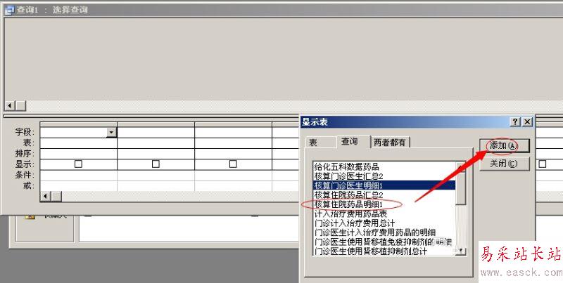一、打開你建立好的access文件,建立好你的查詢,如這里核算住院藥品明細,想通過每個醫(yī)生工號按照不同核算分類進行統(tǒng)計藥品收入。這樣我們就要清楚工號為行標題,而核算分類就為列標題。交叉值就是每個核算分類的統(tǒng)計金額。