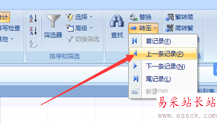 5、然后的對于數(shù)據(jù)上,來移動上一條的數(shù)據(jù)上,點擊菜單中的上一條記錄的選項。