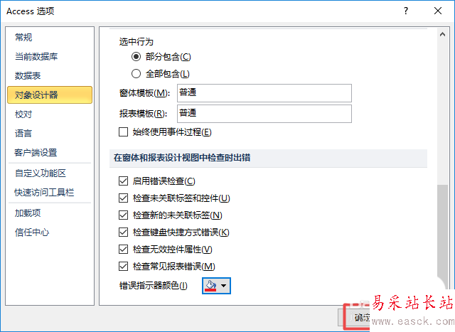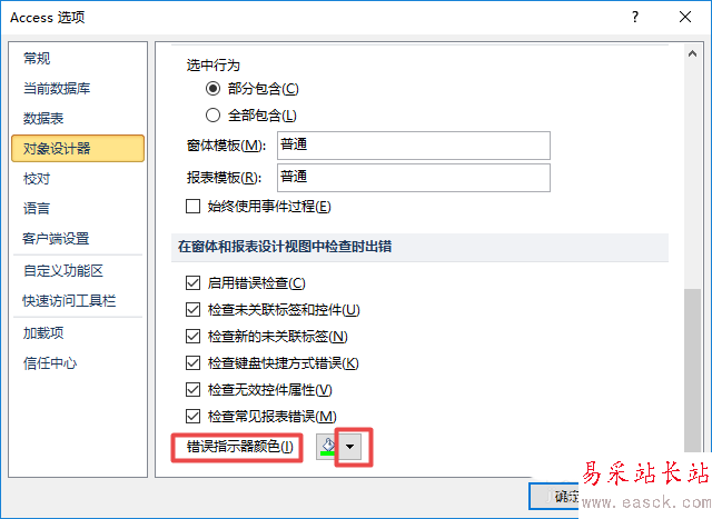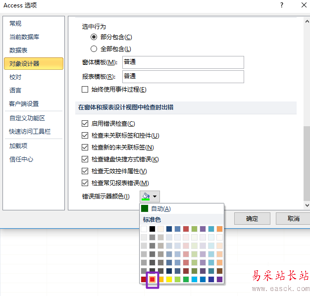 以上就是Access2010錯誤指示器的顏色自定義設置的方法,希望大家喜歡,請繼續關注錯新站長站。
