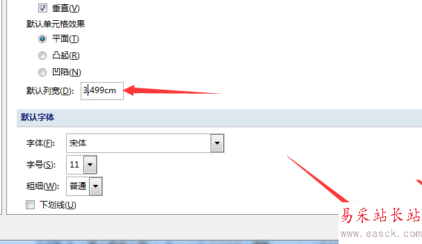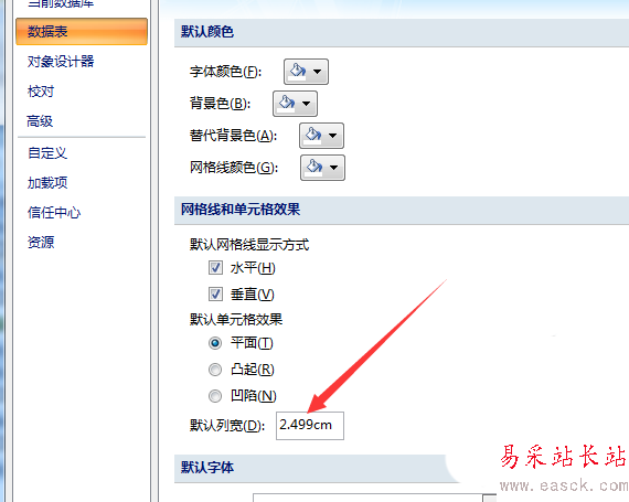 5、選中了數據表的選項之后,在默認列寬中調整。