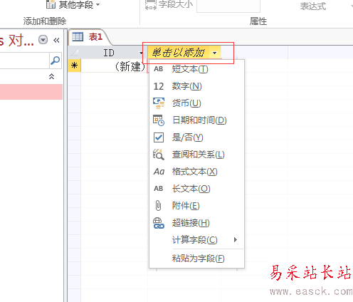 3、點擊表頭位,添加必須的字段,第1列為ID,默認不能更改,可以按需要設定字段的類型,如姓名,字段類型設為文本型
