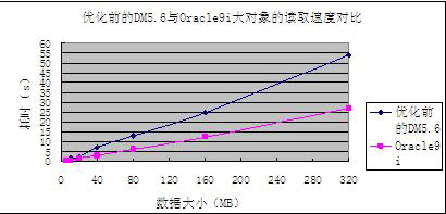 接下來給出優(yōu)化前的DM5.6與Oracle9i的大對象讀取速度對比結(jié)果。