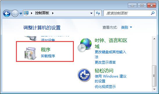 2、打開控制面板,找到并打開程序。