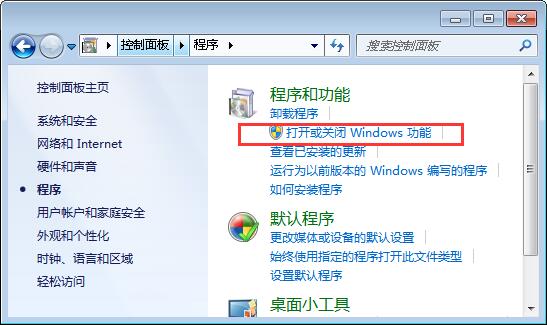 3、找到并打開程序里的啟用或關閉windows功能。