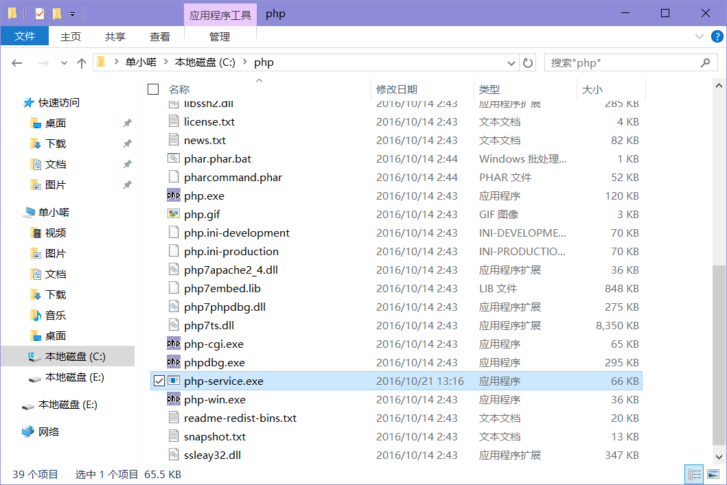 4、將"winsw-1.19-bin.exe"重命名為"php-service.exe",并且復制到PHP根目錄