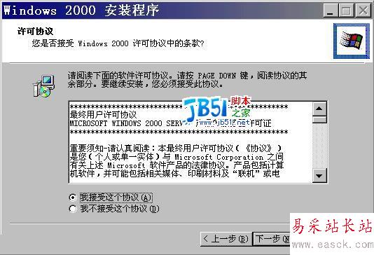 2、在此,我們不選擇升級到 windows2000 中,點擊“否”按鈕,返回安裝對話框,并且點擊“安裝 windows 2000”,開始安裝,如下所示: