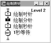 1、 拖曳一個顯示圖標到流程線上,命名為表盤,打開此圖標在其中繪制圖1的圖形。