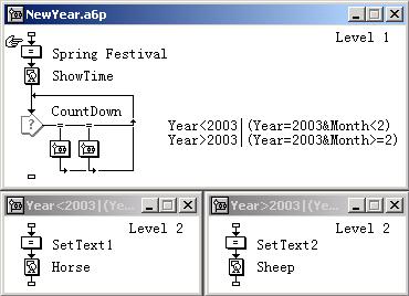 每年除夕夜人們總有“守歲”的習慣,借此總結自己一年來的得與失,迎接新的農歷年的到來。讓我們把計算機的系統時間調整為2003年1月31日,利用authorware 6.5一起來設計制作這個電子"羊年倒計時"程序。文章末尾提供源文件下載。