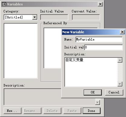 自定義變量是用戶根據程序設計與執行的需求而自己添加定義的變量。在authorware 6.5中可以通過調出變量分類窗口(執行菜單【window】/【variables】或快捷鍵ctrl+shift+v)后選擇【new】按鈕進行新建自定義變量操作,如圖2所示;亦可在任何的變量使用場合下直接定義變量,如計算圖標代碼編輯器里,確定后系統會自動判斷該變量為何類型變量,如果為用戶自定義則提示新建之。變量名通常用英文字母+數字來表示,但是不可以出現和系統變量或已有自定義變量同名的情況,即要保證變量名表示的唯一性,否則會出現錯誤提示,如圖3所示。