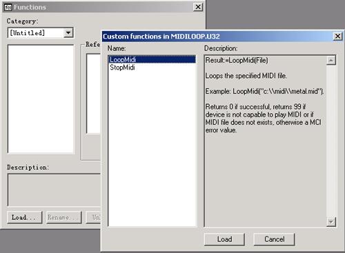 1.執行菜單【window】/【functions】或快捷鍵ctrl+shift+f打開函數列表窗口,在【category】函數分類列表下選擇欲導入函數的a6p或a6l文件,此時按鈕"load…"變為可用狀態。