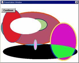 chapter03文件夾中的范例程序randomdraw.a7p演示了上述3個腳本函數的使用:如圖3-44所示,單擊【continue】按鈕,就可以在【演示】窗口中分別看到10個矩形、10個圓形和10條線段。