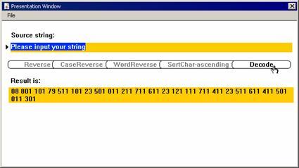 chapter03文件夾下的范例程序scripticon.a7p演示了這些腳本函數的功能。如圖3-45所示,讀者可以在演示窗口上方的文本輸入框中自由輸入字符串,然后單擊不同的按鈕調用腳本函數對輸入的字符串進行處理。注意在單擊encode按鈕后,才能使用decode按鈕對加密后的字符串進行解密,并且在單擊decode按鈕之前,其他按鈕處于禁用狀態(tài)。