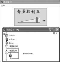 插入聲音時,并不是用常用的聲音圖標插入所需聲音,而是用directmediaxtra來導入所需聲音,然后用系統函數callsprite進行聲音音量的動態設置。