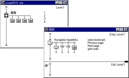 本實例中,我們使用currentpageid變量存儲的值來標記框架結構中的頁,以便于在今后的程序運行過程中返回這些頁,被標記的頁的標識號存儲在bookmark列表中,程序的邏輯結構如圖6-19所示: