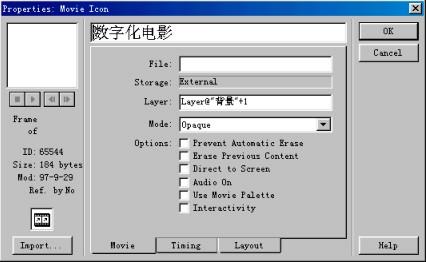 使用這種設置,當程序運行時,數字化電影所播放的每一幀都在“背景”【顯示】設計按鈕中所顯示對象的前面。