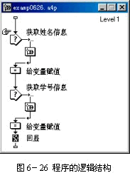 該實例是讓用戶從一個交互作用的文本輸入響應類型上輸入姓名和學號,然后程序讀取用戶的學號和姓名,再將姓名和學號顯示在展示窗口中。程序的邏輯結構如圖6-26所示。